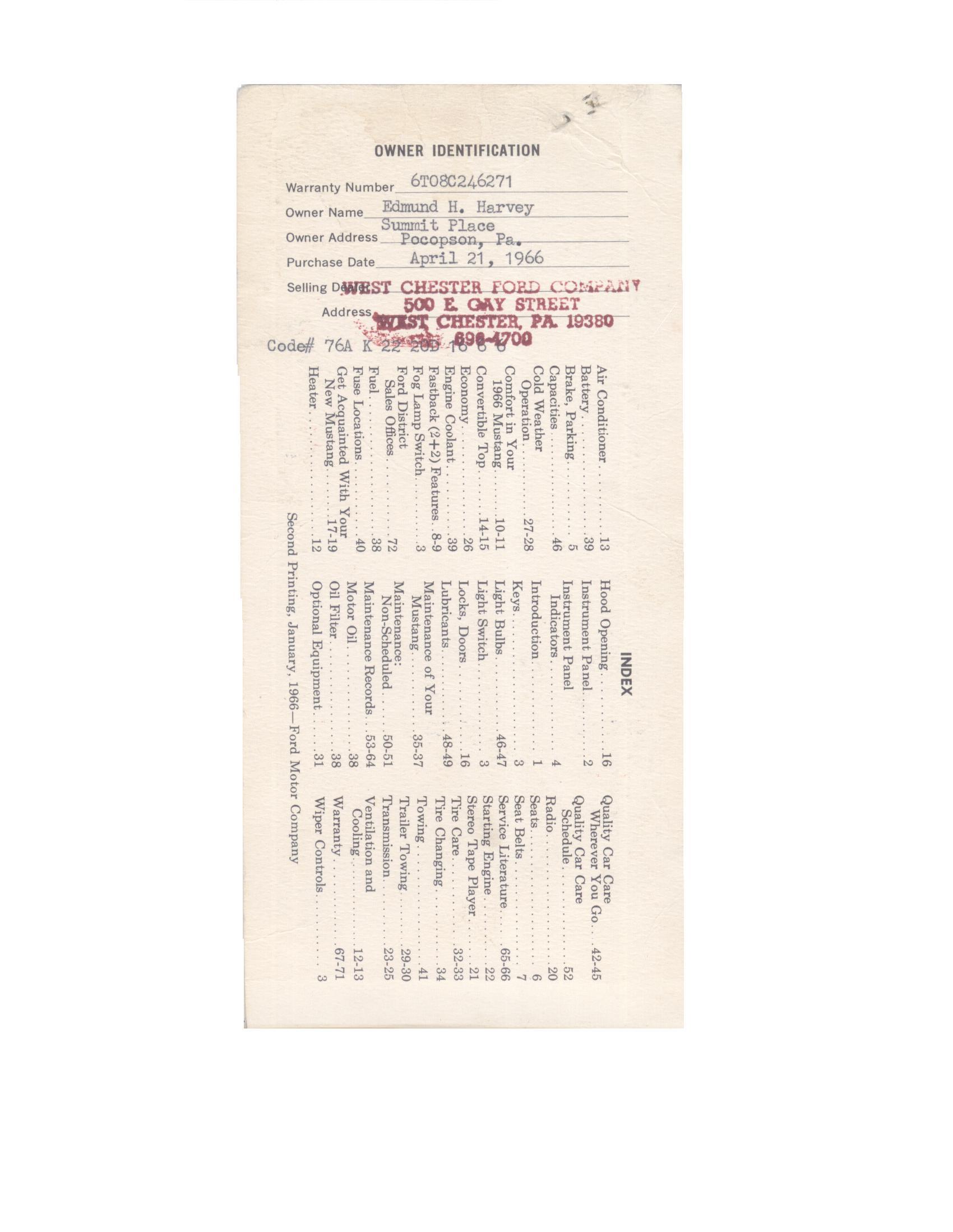 21, 1966 by Edmund "Ted" Harvey of Pocopson, PA as a 25th wedding